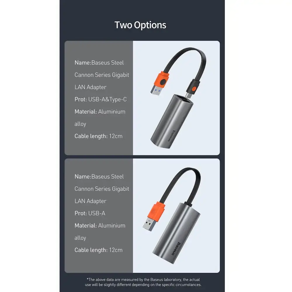 Baseus Steel Cannon Series USB A & Type-C Bidirectional Gigabit LAN Adapter
